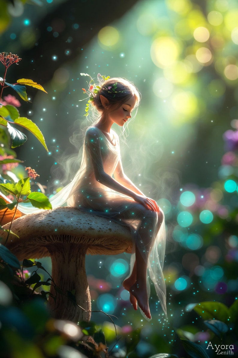 This free high-resolution phone wallpaper features a delicate fairy resting peacefully on a giant mushroom in a sun-drenched, enchanted forest. With soft bokeh lighting, glowing fireflies, and dreamy green tones, this aesthetic fantasy background is perfect for iPhone and Android lock screens.