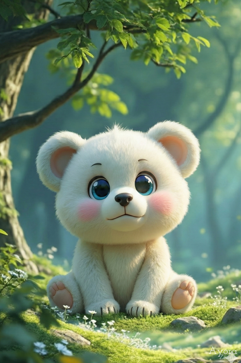 Immerse your mobile screen in the magic of this stunning fantasy elf and bear Phone wallpaper featuring a graceful young elf with flowing brown hair, pointed ears, and a serene expression. And a Cute fluffy white bear.